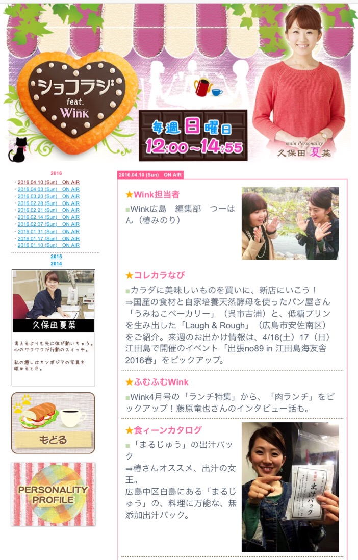 よ〜くよく聞いてみると、RCCラジオの番組の中で紹介された様子。